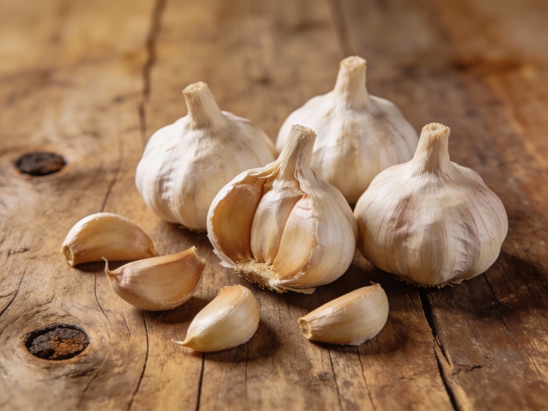 Alho contém alicina, um composto sulfurado que age como vasodilatador natural.